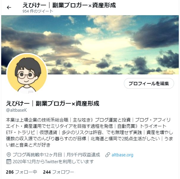 ツイッターはゆるく続けていますので、ブログや資産運用、セミリタイアなど共通点がある方ない方、ぜひよろしくお願いいたします。